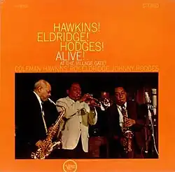 Hawkins! Eldridge! Hodges! Alive! At the Village Gate! is a live album by saxophonists Coleman Hawkins and Johnny Hodges with trumpeter Roy Eldridge which was recorded at the Village Gate in 1962 and released on the Verve label.[1][2]