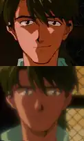 "He was aware that he was still a child."[a] is the twenty-first episode of the Japanese anime television series Neon Genesis Evangelion, which was created by Gainax. Hideaki Anno and Akio Satsukawa wrote the episode, which the animator Hiroyuki Ishido directed. The series' protagonist is Shinji Ikari, a teenage boy whose father Gendo recruited him to the special military organization Nerv to pilot a gigantic, bio-mechanical mecha named Evangelion into combat with beings called Angels. In this episode, Kozo Fuyutsuki, the deputy commander of Nerv, is kidnapped by a secret organization called Seele, which questions him about his past and how he met Gendo. Fuyutsuki retraces his youth and his meeting with Yui Ikari, a young scientist with whom he falls in love. Ryoji Kaji, a member of Nerv, rescues Fuyutsuki and is killed by Seele.