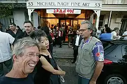 First Head On Portrait Prize opening event, 2004. Front row: Ian Lever, SBS TV broadcaster Lee Lin Chin, photographer Jon Lewis