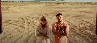 Shot of Noizy and Loredana sporting the outfits used for the single's music video