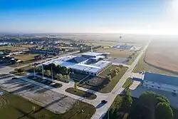 So what do 500 people have to do in the middle of a cornfield? Well, a lot actually. Sharpe runs a construction company at Heartland, which builds all the houses for residents to live in. They are suburban homes, with lawns maintained by Heartland staff, a stone's throw from the nearby businesses also owned by Sharpe.