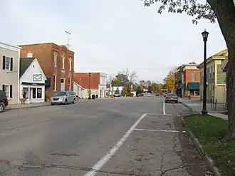 As the twentieth century turned, the village grew slowly, with developers platting a small addition after the Detroit United Interurban Railway constructed lines southwest of the village in 1900. In 1916, a fire destroyed a row of frame buildings on Main Street and anew brick commercial block was constructed. As the village grew, several residential structures were added. However, the size of the town center essentially remained as it had, and 100 years later the core of the village remains intact.[2]
