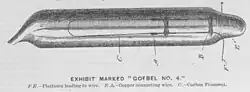 Goebel-Lamp No. 4. Henry Goebel said, he had made this lamp prior to 1872. This lamp was considered to anticipate the Edison patent, assumed the date of production was fully proved. Goebel-Lamps No. 1,2 and 3 were subject of technical discussions whether they anticipate the invention of Thomas Edison.