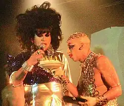 Heklina acted in local theatre productions, most notably the S.F. Golden Girls productions (as Dorothy Zbornak), and emceed a variety of community and charitable events, including the Folsom Street Fair (along with Sister Roma) and San Francisco Pride.[12] She was voted Community Grand Marshal of the 2004 San Francisco GLBTQ Pride Parade,[13] and won the 2009 Pride Creativity Award for Outstanding Artistic Contribution to the LGBT Community. She was sainted by the Sisters of Perpetual Indulgence.[14] Heklina co-starred in a series of short films called the Tran-ilogy of Terror, a series of drag horror spoofs written and directed by long-time collaborator Joshua Grannell, who performs under the name Peaches Christ,[15] and also starred in the film Baby Jane?.
