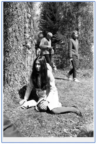 The top of the bill was occupied by the American-Canadian singer Buffy Sainte-Marie. Her fee and expenses were paid for by Yle, who also recorded the event. For some reason, Yle did not arrange transportation for Sainte-Marie from the airport, so the task fell on Timo Pakkanen, known for performing as Santa Claus.[3] Sainte-Marie was then known for her hit “Universal Soldier”, the translation of which had been released earlier that year by the Finnish young rising star Hector with the title “Palkkasoturi” (‘mercenary’). His version had flown to the top of the Finnish charts. Sainte-Marie knew about this version and mentioned it while speaking to the audience.[1][2]
