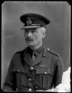 He was promoted to captain on 27 January 1900,[3] and served with distinction as a Special Service Officer for Mounted Infantry in the Second Boer War in South Africa. Following the end of that war in June 1902, he left Cape Town on the SS Canada returning to Southampton in late July,[4] and was back in a regular commission with his regiment three months later.[5] He was promoted to major in 1904, and served as Military Secretary to the Governor of Gibraltar from 1905 to 1910. In 1908 he transferred to the South Wales Borderers and in 1912 he took command of the 2nd Battalion, being promoted lieutenant-colonel the following year.