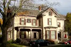 The Henry F. Barker House is a historic house at 103 Greenleaf Street in Quincy, Massachusetts. The 2+1⁄2-story wood-frame house was built in 1871 for Henry F. Barker, owner of some of Quincy's largest granite quarries. It is one of the best-preserved Italianate houses on Greenleaf Street, which is lined with fashionable 19th-century houses. The L-shaped house has paired brackets and dentil moulding in the eaves, projecting polygonal window bays with similar features, and a decorated porch in the crook of the L.[2]