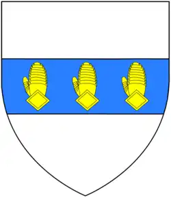 Arms of Fane of Boyton, illegitimate issue of Gen. Henry Fane: Argent, on a fess azure three dexter gauntlets appaumy or,[15] a differenced version of Fane, Earl of Westmorland