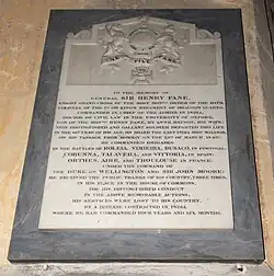 General Sir Henry Fane GCB (26 November 1778 – 24 March 1840) commanded brigades under Arthur Wellesley, 1st Duke of Wellington during several battles during the Peninsular War, and served both as a member of Parliament and Commander-in-Chief of India.