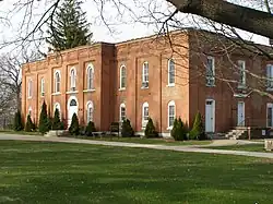 Heritage Hall is the oldest building on the campus of Valparaiso University in the U.S. state of Indiana. Built in 1875 by John Flint, it was used as a residence hall for men.[2] In 1878, a fire destroyed the third floor. The building was later purchased by Richard Abraham Heritage, remodeled into a two-story school of music,[2] and renamed Heritage Hall.[3] At different times throughout its history, Heritage Hall underwent renovations. It was used as a dormitory, a barracks (during World War I), a machinery classroom, and finally a library when Valparaiso University was bought by the Lutheran University Association in 1925. In 1959, the new Moellering Library had been completed and the building was converted to classrooms and offices. Heritage Hall was placed on the National Register of Historic Places in 1976.