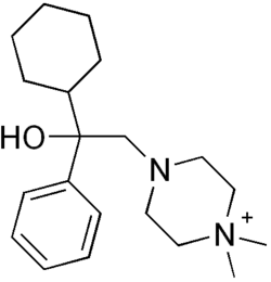 - ^ Kasich AM, Fein HD (January 1958). "Hexocyclium methosulfate in active duodenal ulcer; evaluation of a new anticholinergic drug in conventional and long-acting forms, especially its effect on gastric pH as studied in 48-hour analysis". The American Journal of Digestive Diseases. 3 (1): 12–23. doi:10.1007/BF02231305. PMID 13487546.