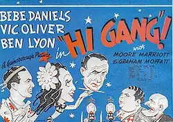 Hi Gang! is a 1941 British comedy film directed by Marcel Varnel and starring Bebe Daniels, Ben Lyon and Vic Oliver.[1] It was a spin-off from the popular BBC radio series Hi Gang!.[2]