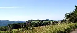 The highest point of the High Rhön Road is about 840 metres above sea level at a point east of the Heidelstein and the Stirnberg. The route runs east of the main crest of the High Rhön.