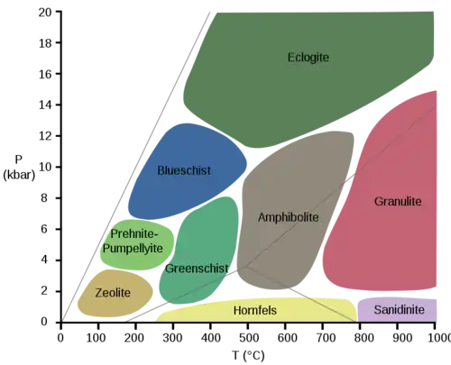 There are multiple processes that can lead to the development of high pressure terranes. First, upper crustal rocks have to be carried to great depths, nearing the mantle boundary. This could be accomplished by continental margin subduction, microcontinent subduction, sediment subduction, intracontinental subduction, subduction erosion, or foundering of a crustal root.[3] After burial at depth, these continental rocks can then return to the surface through: