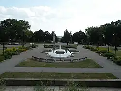 The park, which contains two of the city's large water reservoirs, offers picnic groves, a Babbling Brook water feature, Lake Carnegie for fishing, the city's only long-course swimming pool, four sand volleyball courts, tennis courts, walking trails, and two children's playgrounds (Farmhouse Park and the "Super Playground"). The Pittsburgh Zoo & Aquarium is also within the park, as is the Washington Boulevard Bike Track, a banked half-mile oval loop for bicyclists.[4]