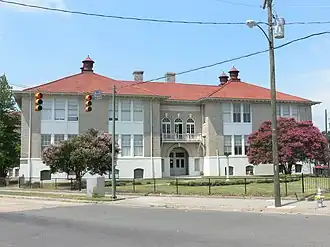 Highland Park Public School is a historic school building located in Richmond, Virginia. The structure was built in 1909 based on a design by noted Virginia architect Charles M. Robinson. The Mediterranean Revival building is a two-story brick and stucco structure topped by hipped roofs clad with terra cotta tiles.[3] In its use of the Mediterranean Revival style, the building was a departure from the Georgian and Gothic styles commonly used in Virginia school buildings of the time.[4] The building used as the community school for Highland Park, Virginia, until the community was annexed by the City of Richmond in 1914. It served thereafter as a neighborhood school in the Richmond public school system until it closed in the 1970s. The building is considered to be important as an example of the work of Charles M. Robinson, who served as Richmond School Board architect from 1909 to 1930.[3] The building was listed on the National Register of Historic Places in 1991. The building was converted from 1990 to 1991 into a residential apartment complex for senior citizens and re-opened under the name Brookland Park Plaza.[4]