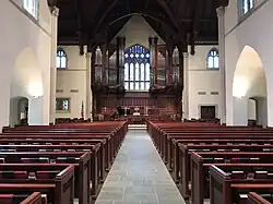 The current sanctuary was designed by architect Mark Lemmon (1889–1975) and Roscoe DeWitt (1894-1975) and built in 1927.[1][2] The first service in the sanctuary was held on February 6, 1927, when Umphrey Lee served as the pastor.[1] The Great Depression came and it took 15 years to pay off the debt. When it was paid, the church building was dedicated in 1943.