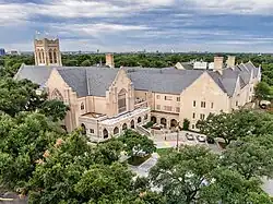 In February 1916, a Methodist congregation met on the campus of Southern Methodist University for the first time to worship together.[1] It was organized as a congregation of the Methodist Episcopal Church, South (MECS). It was initially named University MECS, but by the fall of that year, the student congregation joined Methodists in the newly forming Town of Highland Park and the church was renamed Highland Park MECS. A year later, in 1917, a temporary church building called "The Little Brown Church" was erected.[1]