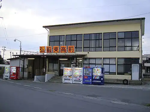 Hirosaki-Higashikōmae Station (弘前東高前駅, Hirosakihigashikōmae-eki) is a railway station in the city of Hirosaki, Aomori, Japan, operated by the private railway operator Kōnan Railway Company.