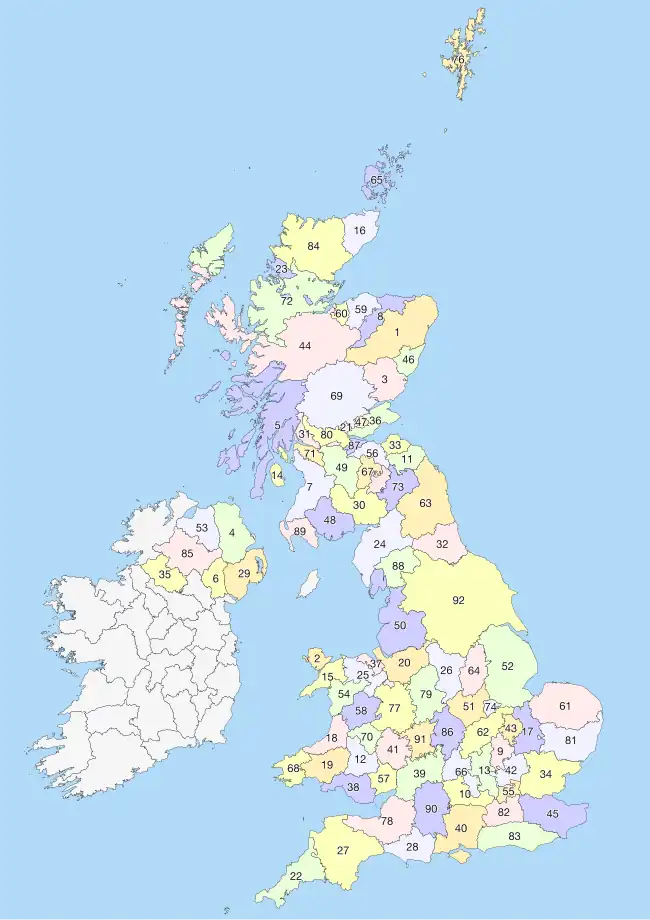 Historic counties of the United Kingdom (detached parts not shown separately)