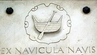 On February 5, 1941, the Chief of Criminal Police in Łódź, Dr. Wilhelm Zirpins, proposed creating a penal camp for Polish children and youth.[44] On February 17, 1941, the Reich Minister of the Interior officially confirmed the Wartheland authorities’ 1940 decision to move the regional capital from Kalisz to Łódź. On May 8, 1941, after the position was vacant for a year, Werner Ventzki was appointed Mayor of Łódź, a role he held until July 2, 1943, before volunteering for the Waffen-SS, being succeeded by the head of the local Gestapo, Otto Bradfisch.[45][46] On June 17, the previous coat of arms of Łódź - the golden boat on a red background, was changed to new coat of arms: a double-armed golden swastika on a blue background, inspired by a pre-war archaeological find near Zgierz. The new emblem reflected the heraldry of the Litzmann family. A formal ceremony unveiling it was held on July 2, 1941, at the city’s Sports Hall.[47][48]