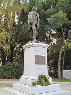 In March 1741 the city endured a large-scale attack by British and American colonial troops led by Admiral Edward Vernon, (1684–1757), who arrived at Cartagena with a massive fleet of 186 ships and 23,600 men, including 12,000 infantry, against only 6 Spanish ships and less than 6,000 men, in an action known as the Battle of Cartagena de Indias. The siege was broken off due to the start of the tropical rainy season, after weeks of intense fighting in which the British landing party was successfully repelled by the Spanish forces led by commander General Blas de Lezo y Olavarrieta, (1689 - aftermaths of the Cartagena battle, 1741), a Basque from the Gipuzkoa lands, (Spain).