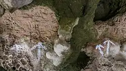 The earliest trace of human habitation on Curaçao can be found in Rooi Rincon. It consists in a natural overhang in the rocks used by preceramic residents. The remains that have been found consist of waste heaps of shell, animal bone material and stone. The objects are made of stone and shell, which can be used for different purposes. There are also rock paintings here. The dating of these oldest remains of Curaçao is between about 2900 and 2300 BCE. Similar remains and human graves are known from Sint Michielsberg, c. 2000 to 1600 BCE. However, a recent study on charcoal material at the site of Saliña Sint Marie points towards human activity taking place as early as c. 3700 BCE.[1]