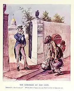 Historians have debated the importance of antisemitic rhetoric in the Populist movement in rural America in the 1890s. Richard Hofstadter, a leading historian, in 1955 argued that the Greenback-Populist tradition was responsible for most of the popular antisemitism in the United States. He notes that there were various forms of anti-Semitism but, "It was chiefly Populist writers who expressed that identification of the Jew with the usurer and the 'international gold ring' which was the central theme of the American anti-Semitism....for many silverites, the Jew was an organic part of the conspiracy theory of history."[31] Historians no longer agree with Hofstadter. Several prominent Populists did express hostile images, but most did not.[32] Historian Walter Nugent read through 200 Populist newspapers and pamphlets and found little evidence to support claims of widespread antisemitism.[33]