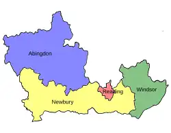 | 1885 | Under the Redistribution of Seats Act 1885,[2] the county was divided into three single-member constituencies, namely the Northern or Abingdon Division, the Southern or Newbury Division and the Eastern or Wokingham Division.