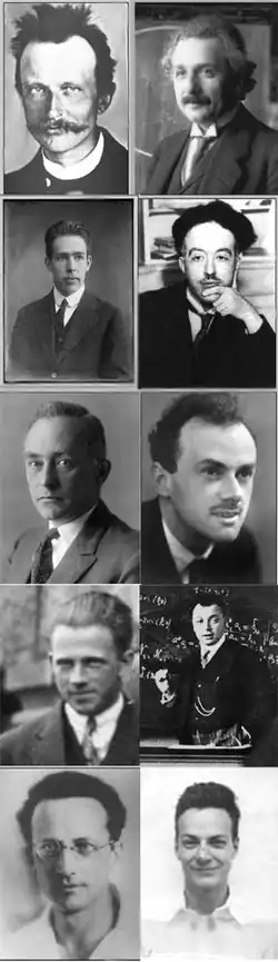 The history of quantum mechanics is a fundamental part of the history of modern physics. The major chapters of this history begin with the emergence of quantum ideas to explain individual phenomena—blackbody radiation, the photoelectric effect, solar emission spectra—an era called the Old or Older quantum theories.[1] Building on the technology developed in classical mechanics, the invention of wave mechanics by Erwin Schrödinger and expansion by many others triggers the "modern" era beginning around 1925. Paul Dirac's relativistic quantum theory work led him to explore quantum theories of radiation, culminating in quantum electrodynamics, the first quantum field theory. The history of quantum mechanics continues in the history of quantum field theory. The history of quantum chemistry, theoretical basis of chemical structure, reactivity, and bonding, interlaces with the events discussed in this article.