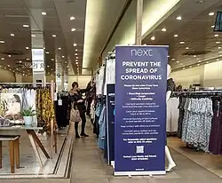 On 20 March, the government announced the closure of public venues, such as pubs, restaurants, gyms, leisure centres, nightclubs, theatres and cinemas.[109] The chancellor, Rishi Sunak also announced that the government would cover 80% of the salaries of retained workers until restrictions were over.[110]