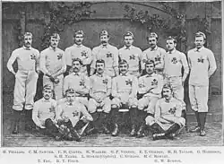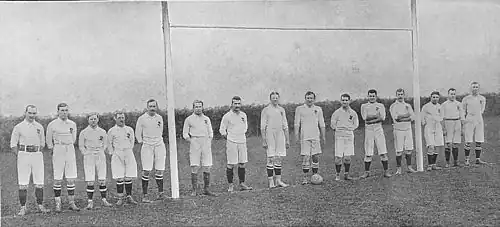 In 1884, England defeated Wales at the northern venue of Cardigan Fields in Leeds.[21] This was followed by a successful defence of their Home Nations trophy, although the 1885 tournament was not completed.[20] Despite the tournament not being completed, 1886 would have been a shared victory with Scotland.[20][22][23] In 1887, Ireland defeated England for the first time.[24] In 1889, England played their first match against a non-home nations team. England defeated the New Zealand Natives 7–0 at Rectory Field in Blackheath.[25][26]