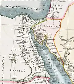 In accordance with the population distribution, both the Romans[16][17] and the early Arabs[18] organized the region territorially in such a way that the Negev was not grouped with Palestine, but rather with the rest of the Sinai Peninsula and parts of what is now southwestern Jordan and the northwestern Hejaz.