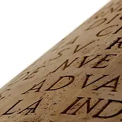 Detail of the large inscription on the pedestal of the statue of Charles III (popularly known as the "King Mayor")