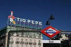The widening of the Puerta del Sol was a work of great magnitude. The demolition of about thirty houses ended on May 1, 1858. After the expropriations (under the Law of Forced Expropriation) and later the demolitions, the building plots were sold (some of the plots were photographed by Charles Clifford and J. Laurent).[55] The rubble resulting from the demolitions ended up in the Moro gardens. Of all the old buildings, only the Casa de Correos and the Casa Cordero were left standing. Public land sales brought new owners onto the scene. The one who acquired the most land was Fernández Casariego (he bought four premises), followed by Juan Manuel Manzanedo (Marquis of Manzanedo), a situation that led to Puerta del Sol being jokingly called "Manzanedo's courtyard". The rest of the premises were distributed among different owners. The largest and most expensive premises was the one acquired by Lamberto Fontanella between Calle de Alcalá and Carrera de San Jerónimo, premises that would become the Hotel de París (and which had the sign "Tío Pepe" on it for many years; the sign was recently moved to another building on the northwest side of the Puerta del Sol). On December 5, 1858, the first house was built between Calle Preciados and Calle del Carmen; the auction of premises ended on January 18, 1860. The demolitions left such a desolate aspect that the novelist Wenceslao Ayguals de Izco compared the new Puerta del Sol to "another bombed Sebastopol".[55]