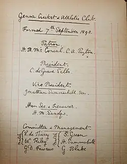 - ^ After the first friendly match (played either on September 6, 13, 20 or 27) played by Herbert Kilpin, the team's founder, in September 1891 against the future FC Torinese, a few weeks after his arrival in Italy, cf. Papa & Panico (1993). Verso il venticinquennio del football