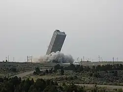 In December 1981, Occidental Petroleum and Tenneco announced that they were suspending work on the Cathedral Bluffs project, and laying off hundreds of employees. The company cited rising construction costs and slumping oil prices as the reasons.[54] With financial aid from the government Synthetic Fuels Corporation in 1983, the Cathedral Bluffs company revised its plan, and applied for a contract with Synthetic Fuels Corporation to sell it 14,100 barrels of shale oil per day, produced by room-and-pillar mining and surface retorting. But negotiations dragged on, and the Synthetic Fuels Corporation was defunded by the Reagan administration in 1985. Pumping and maintenance of the shaft were suspended in 1991, and the shaft house was demolished in 2002. The project had not produced any oil.[51]