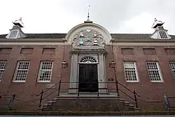 It was built during the years 1770-1772 on the former location of the "Kasteel van Leerdam", a castle that was destroyed by the Spanish in 1574.[1] The hofje was founded by Maria Ponderus, the daughter of a surgeon who at 20 married the 50-year-old widower Pieter van Aerden, notary in The Hague. She lived to 92, surviving her husband and three children, who also had no issue. She decided to leave her fortune to a hofje for women of the Protestant faith. Though she had intended her hofje for the poor of The Hague, by the time she died the most of her poor relations were living in Leerdam. Through connections with the House of Orange, the site of the old castle of Leerdam was chosen to build the hofje.[2]