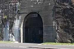 • Ho5[9][10] (Fuel Store I) Complete and occupied – Railway Walk, St. Aubin, Located inside the former Jersey Railways & Tramways tunnel at St Aubin and was converted into a munition store in 1944. In 1941, the German engineers lost no time in exploiting the tunnels potential, setting to work to enlarge the diameter of the original bore whilst leaving the portals unaltered save for the erection of a hefty concrete anti-blast wall hard by the lower entrance; this incorporated a machine gun loophole which formed the defensive position known as Winderstandsnest Aubins Ort (Resistance Nest St Aubins Village). Once the task of enlarging the original bore was complete, the walls were then lined with concrete and the main gallery was driven at a right angle into the hillside. Although Ho5 was originally intended to be used as a fuel store, Ho5 was actually used to store ammunition.