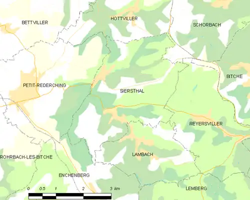The map below shows the location of Siersthal with key infrastructure and adjacent municipalities.
