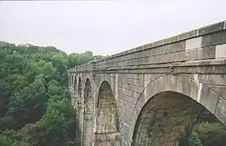 One means of alleviating the lack of facilities has been to provide for a cycleroute, the "Ruby Way" - part of the National Cycle Network, along the trackbed of the former railway which opened in 2005, linking Holsworthy with Bude and Halwill.[14] The cycleway brought one of the viaducts (Derriton) back into public use. Both are now in the ownership of Sustrans. Torridge District Council has indicated that the viaducts, as well as the trackbed, are safeguarded against future development in accordance with planning policies.[13] Access to Derriton Viaduct is provided by the "Cornish Corkscrew", an elaborate spiralling ramp.[15] In the meantime, Devon County Council have continued to support the development and extension of the cycleway project by purchasing further sections of trackbed and seeking to connect the Bude to Holsworthy route to other cyclepaths such as the Cornish Way at Helebridge.[16]