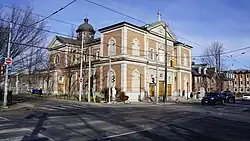 In 1979, the three priests of the Oratory of Saint Philip Neri in Montreal, led by Fr. Jonathan Robinson, were invited by Toronto's Archbishop to move to Holy Family parish.[4] The fathers of the Oratory also opened a seminary, purchasing many homes along King St to create a complex of connected buildings; this seminary has provided a constant stream of new clergy for the parish. Holy Family parish also works with the needy in Parkdale, opening St. Philip's Centre in the 1980s.[5] In 1995 the Oratorians at Holy Family were given the additional care for the declining St Vincent de Paul parish to which some of them moved for a time. In 1997, a fire destroyed the original Holy Family church and in the following year's funds were raised to build a new church on the site[6] as the congregation worshipped at Holy Family School. The Oratorian priests of Holy Family, having maintained a tradition of the weekly celebration of the mass in Latin since their arrival,[7] in 2007 made the parish one of a small number of churches in the Archdiocese of Toronto to begin celebrating a daily Tridentine Mass.