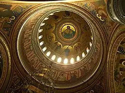 The Holy Trinity Church, Sighişoara was designed in the Neo-Byzantine style.[2] It was built in 1934-37 following the plans of architect Dumitru Petrescu Gopeş, with interior paintings done by the painter Anastase Demian according to tempera technique.