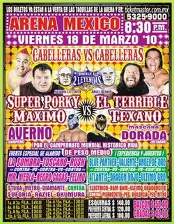 1. ^ a b Ruiz Glez, Alex (February 24, 2011). "Arena México: Homenaje a Dos Leyendas 2011 (18 de Marzo) Brazo de Plata y Máximo vs Texano y Terrible por las cabelleras" (in Spanish). Super Luchas. Retrieved February 24, 2011.