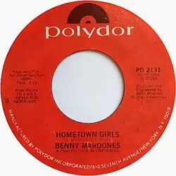 "Hometown Girls" is a song by American singer-songwriter Benny Mardones, which was released in 1980 as the second and final single from his second studio album Never Run, Never Hide. The song was written by Mardones and David Leigh Byron, and produced by Barry Mraz. As the follow-up to Mardones' US top 20 hit "Into the Night", "Hometown Girls" failed to enter the Billboard Hot 100 but reached No. 3 on the Bubbling Under the Hot 100 chart.[1]