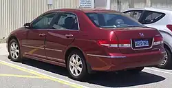 In the U.S., the seventh generation North American Honda Accord is a mid-size car that was available as a four-door sedan or a two-door coupe and was produced by Honda from September 2002 (for the 2003 model year) to 2007. The sedan was also marketed in parts of Latin America, Asia, Middle East, Caribbean, Australia and New Zealand markets, and also known as the Honda Inspire in Japan from 2003. The North American Honda Accord, with modifications for local market needs, was the launch vehicle of Honda in the South Korean market with sales beginning from May 20, 2004.[3]