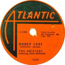 "Honey Love" is a 1954 song by The Drifters featuring Clyde McPhatter, written by McPhatter and Jerry Wexler. With influences taken from calypso music, "Honey Love" was the group's third single release, fourth release on the charts and second number one single on the R&B chart.[2]