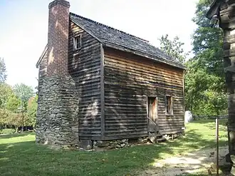 Hoskins House Historic District, also known as Tannenbaum Park, is a historic log cabin and national historic district located at Greensboro, Guilford County, North Carolina. The Hoskins House is a late-18th or early-19th century chestnut log dwelling house measuring 24 feet by 18 feet. It has an interior enclosed stair and exterior stone chimney. The house was restored in 1986–1987. Also on the property is the contributing Coble Barn (c 1830). It is a large double-pen log barn of hewn V-notched logs under a long wood-shingled gable roof. The barn was moved to and restored at its current location in 1987. The Hoskins House site was the focal point of the British attack during the Battle of Guilford Court House on March 15, 1781. The Hoskins property survives today as an important satellite to the Guilford Courthouse National Military Park.[2]