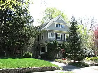 Lawrence Street is located north of downtown Wakefield, extending east from Main Street toward Vernon Street at the southern end of Lake Quannapowitt. This house stands on the south side of the westernmost block. It is a 2+12-story wood frames structure, with an L plan, cross-gabled roof, and exterior finished in a combination of wooden clapboards and decorative cut shingles. Portions of the exterior have applied Stick style decorative woodwork. The wraparound porch, Colonial Revival in style, has been partially enclosed. The main gable is filled with two-slope wooden shingles, a common feature of area 1880s houses.[2]