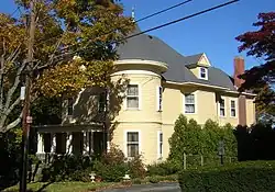 The House at 94 Grandview Avenue in Quincy, Massachusetts, is the best-preserved of a series of Queen Anne Victorians built on Wollaston Hill. The 2+1⁄2-story wood-frame house was built in the 1890s, probably by Horace Briggs, a Boston businessman. It has the complex massing and turret with conical roof that characterize the style. A porch extends across the front, supported by grouped columns and set on a low stone balustrade, and there is a Palladian window in the gable above.[2]